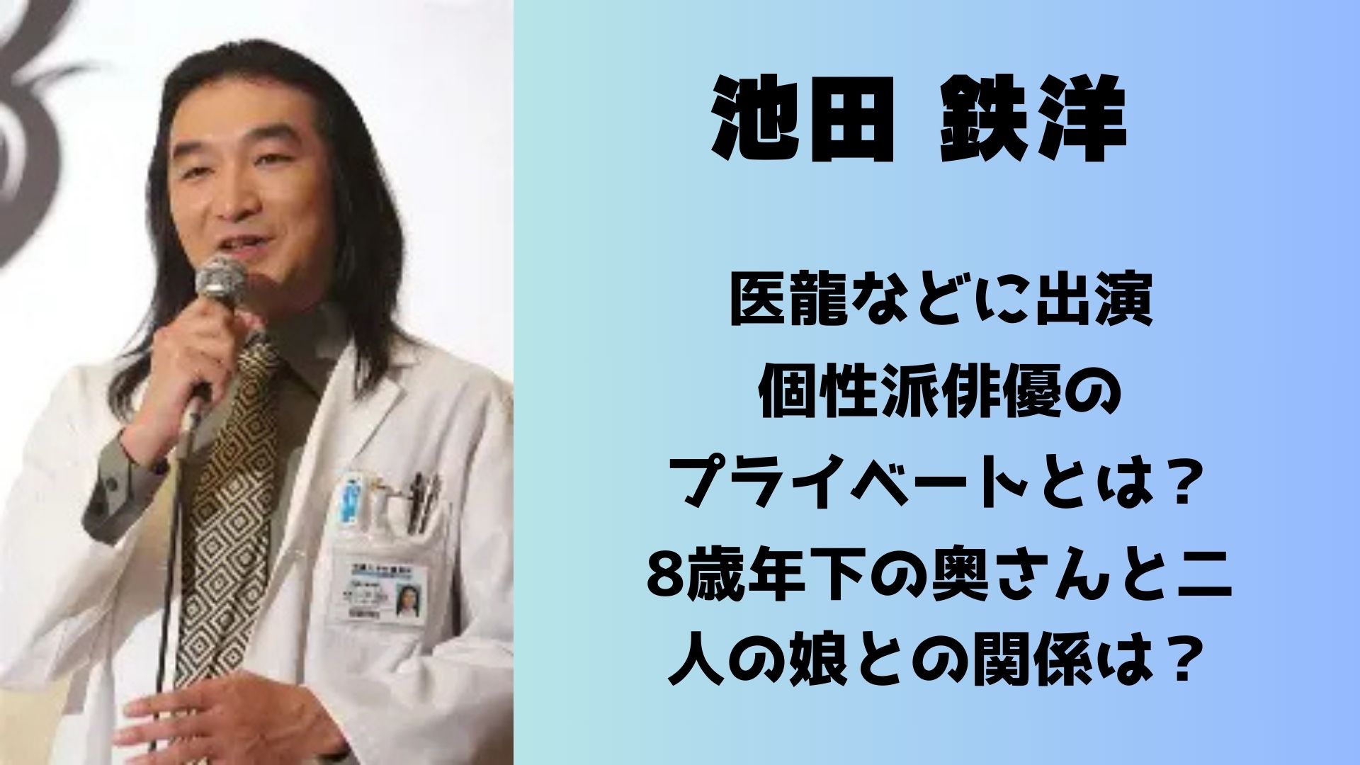 『TRICK』や『医龍-Team Medical Dragon-』などの人気作品では、個性的な脇役として物語に深みを与え、「名バイプレイヤー」として多くの視聴者から支持を集めている池田鉄洋さん。